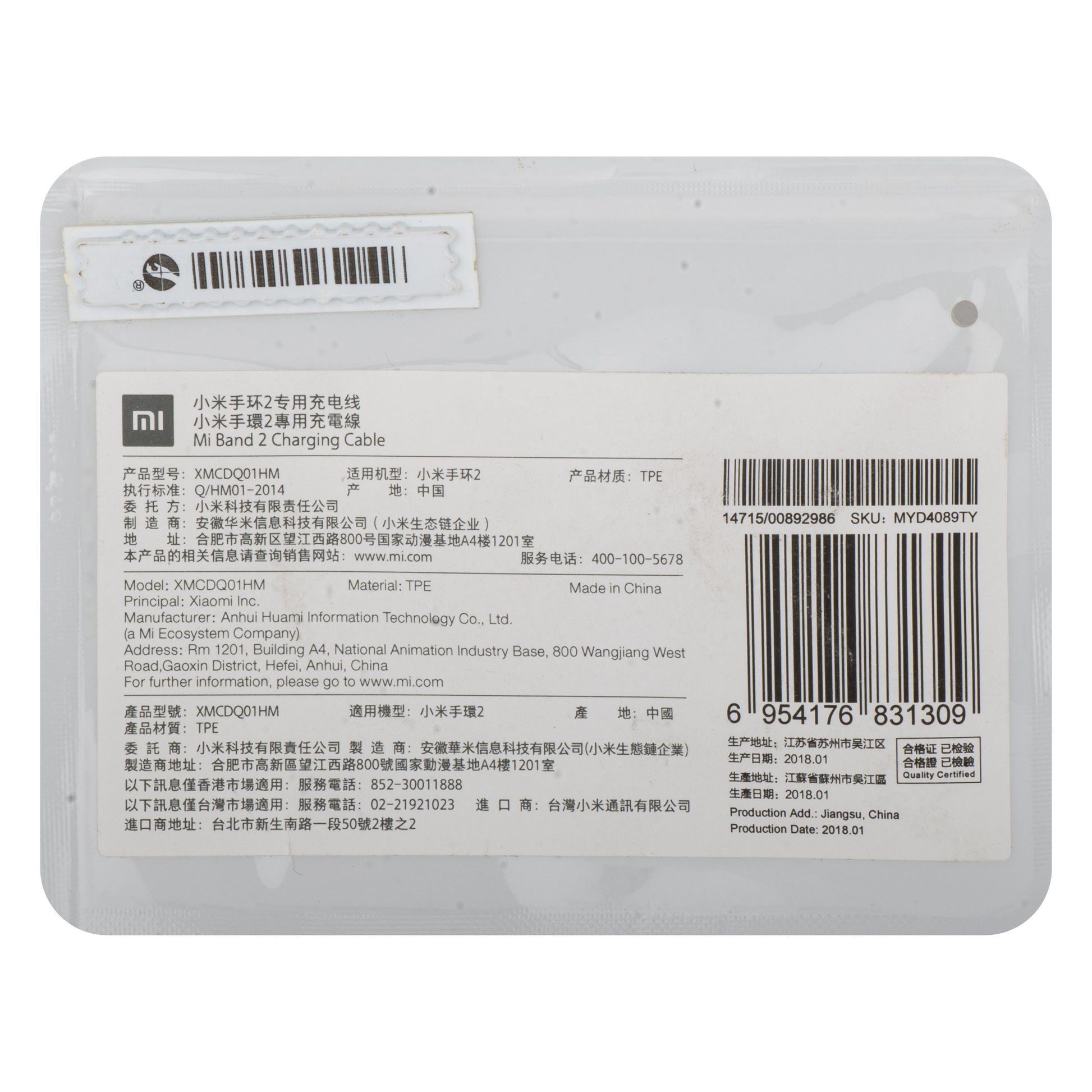 Charging Cable for Xiaomi Mi Band 2, USB-A, Black MYD4089TY