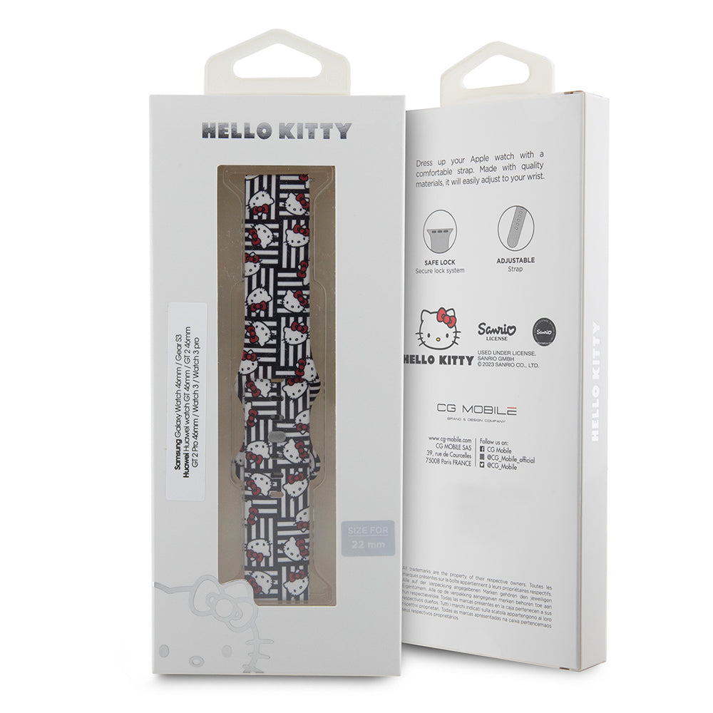 Hello Kitty Silicone Kitty Heads & Stripes Strap for Samsung Galaxy Watch / Huawei Watch Series, Black