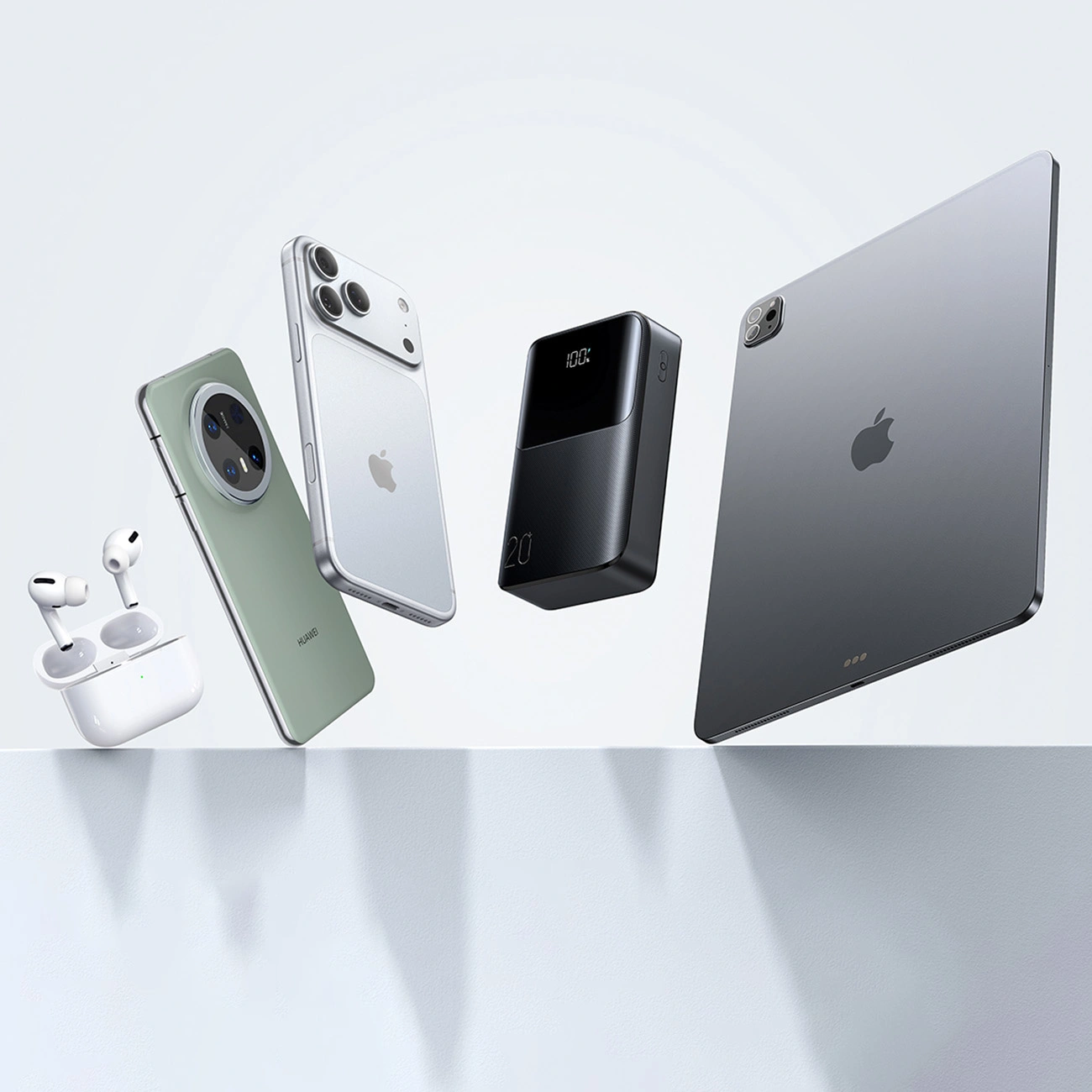 The two USB-C ports with input and output function allow you to charge both the devices and the external battery,