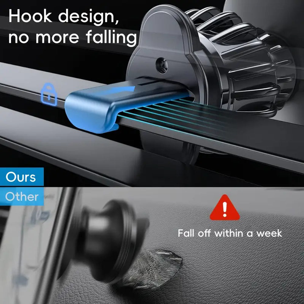 Do you drive often? Then you need a solid holder to keep your phone stable under any circumstances! We recommend the original Techsuit holder! High stability The vent grid mounting system along with the N52 magnets incorporated in the holder ensure a firm hold throughout the journey. Adjustable 360 With the Techsuit holder, you position your phone exactly how you want and enjoy easy access and perfect visibility. Specifications: Materials: ABS, N52 magnets; Mounting type: vent grid; Compatibility: universal; Dimensions: 35 x 48 x 74mm; Hook size: 19mm; Extended hook size: 34mm; Weight: 52g; Package includes: 1x car holder, 2x metal plates.